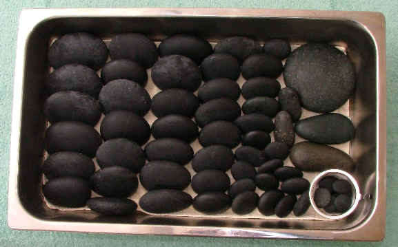 Deze set bestaat uit 36 basaltstenen uit de Andes en 4 coldstones, een